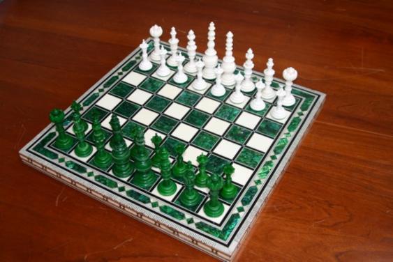 Jeu Turc sur un rare plateau en mosaïque d'os et d'abalone.