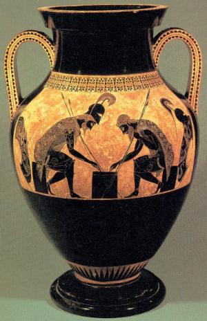Vase étrusque représentant Achille et Ajax jouant au Petteïa, conservé au Musée du Vatican
