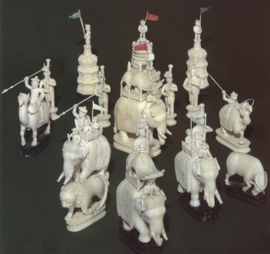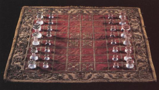 Un des jeux de l'exposition, un remarquable jeu en cristal de roche taillé, de style musulman non figuratif, Inde 19ième siècle.