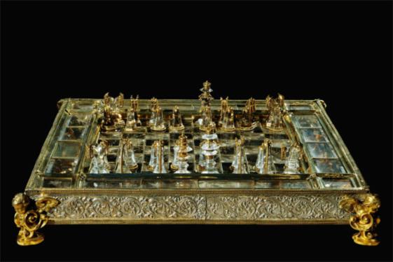 L'échiquier dit de saint Louis provient des collections royales, en revanche la tradition selon laquelle il aurait appartenu à saint Louis est certainement erronée. Cet échiquier en cristal de roche et quartz enfumé a en effet été réalisé au XVe siècle en Allemagne, pour le tablier, et en France, pour les pièces. Très modifié au fil des siècles, il n'en demeure pas moins le témoignage de l'inventivité des artistes du XVe siècle et de la préciosité des collections royales françaises.