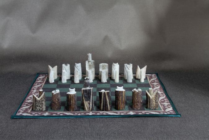 Jeu d’échecs découvert en 1986 sur le site de "l’Îlot des Deux Bornes" en plein centre historique de Noyon. Fabriquées en bois de cerf, de factures modestes, elles appartiennent aux pièces locales que l’on trouve régulièrement sur des sites seigneuriaux ou dans des habitats de haute qualité. L’intérêt de la découverte de Noyon est qu’outre leur bon état de conservation, l’échantillon de la dizaine de pièces mis au jour, permet de restituer un jeu entier et homogène, fait remarquable et exceptionnel pour l’histoire du jeu d’échecs.