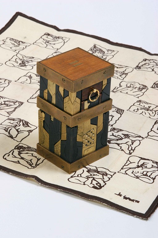 Max Ernst, né le 2 avril 1891 à Brühl et mort le 1er avril 1976 à Paris, est un peintre et sculpteur allemand, dont l'œuvre se rattache aux mouvements Dada et surréaliste. Ami de Man Ray et Marcel Duchamp dont il fit la connaissance lors de son séjour aux USA, il a laissé des œuvres échiquéennes majeures tel que la sculpture "Le roi jouant avec la reine" et un jeu d'échecs en bois réalisé pour l'exposition de 1944 à la galerie Julien Levy. En 1966, il a créé un jeu en série limitée en or et argent. Enfin, il a réalisé avec des verriers de Murano en Italie un jeu monumental en verre, appelé l'Immortel, dont l'échiquier mesure 5 mètres sur 5.